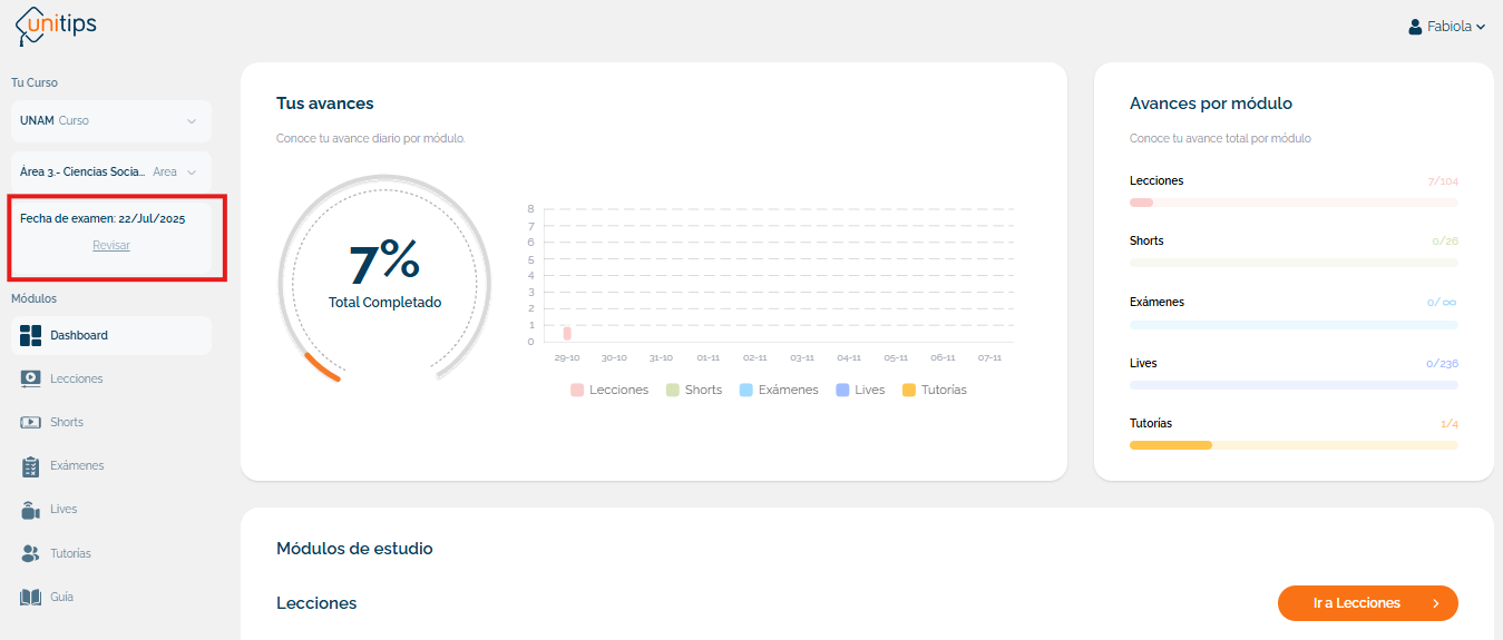 Entra a tu perfil Unitips y da clic en Fecha de examen