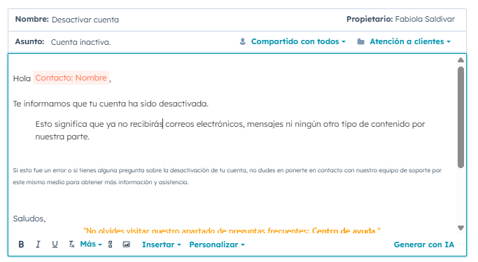 El equipo de soporte atenderá tu solicitud. Una vez que tu cuenta haya sido desactivada, recibirás un correo de confirmación del proceso completado.