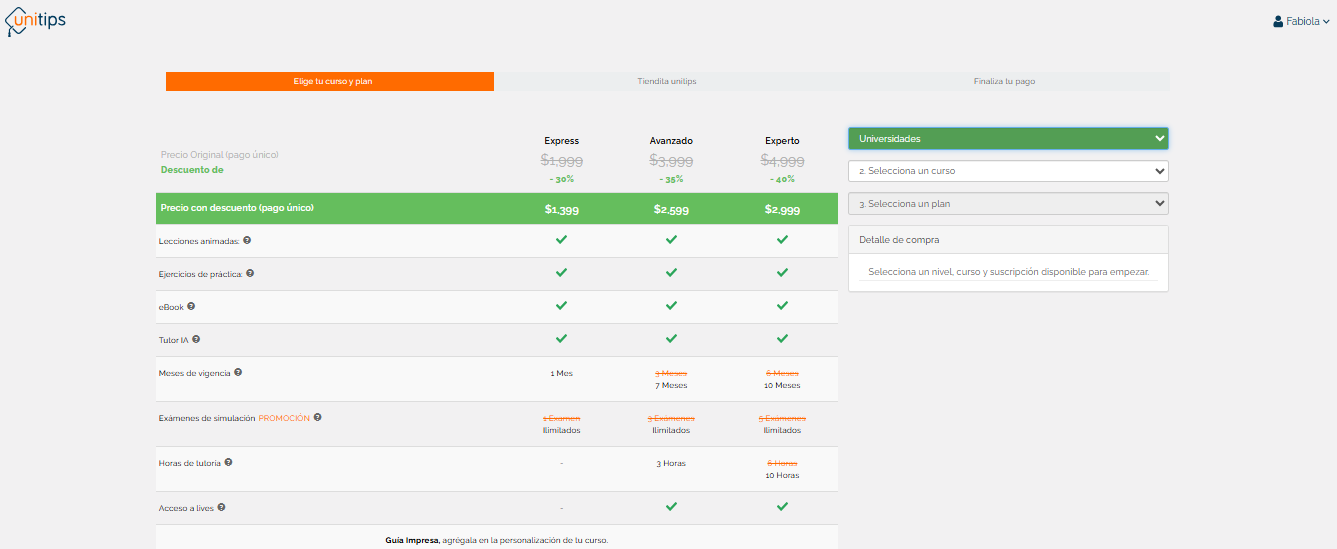 Ingresa a tu perfil y haz clic en "Planes" para adquirir cualquiera de nuestros complementos de estudio