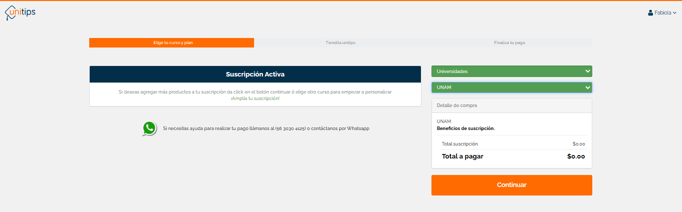 Utiliza las opciones para elegir tu curso actual y da clic en continuar. ![]()