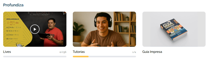 En la sección de tus avances encontraras el progreso que logras diariamente en lecciones, lives, exámenes y tutorias. Esta visión estructurada te permite identificar fácilmente tus puntos fuertes, así como las áreas que aún requieren atención, fortaleciendo tu preparación integral de manera constante y organizada.