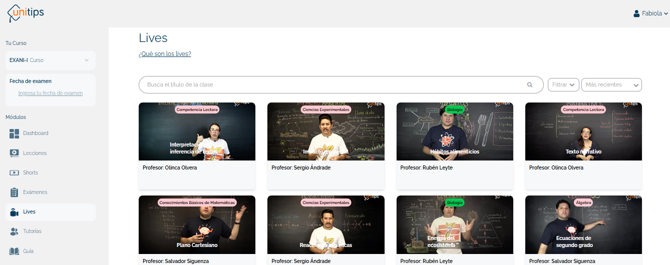 Los lives son clases pregrabadas, impartidas por profesores expertos, que cubren las distintas materias necesarias para el ingreso a la universidad o bachillerato