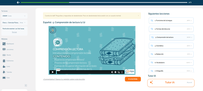 No olvides que cuentas con diversas herramientas como clases en vivo, vídeos cortos (shots), tutorías, exámenes de simulación, y un tutor IA que te acompañarán durante tu estudio y te ayudarán a alcanzar tus metas.